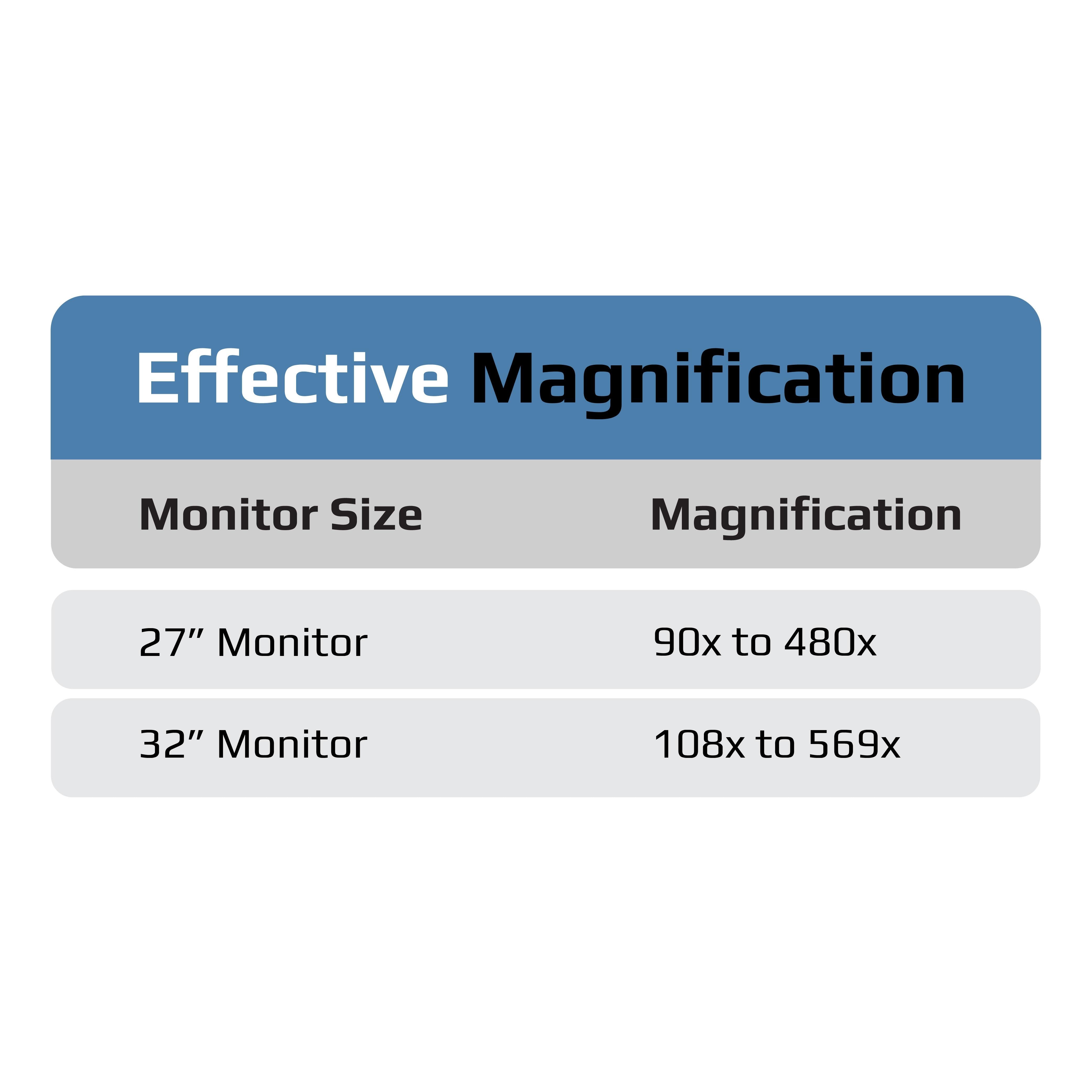 - Powerful Magnification Range,108x-569x - The 108x-569x effective magnification (based on a 32-inch computer monitor) allows you to see the smallest details of ordinary objects. Observe coins, stamps, and other items like you've never seen them before!