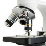 Two included eyepieces (10x and 25x) and 3 objective lenses (4x, 10x and 40x) allow for magnifications of 40x, 100x, 250x, 400x and 1000x.