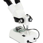 - Two stage plates included: (1) transparent stage for bottom illumination and (1) black and white stage plates for enhanced viewing