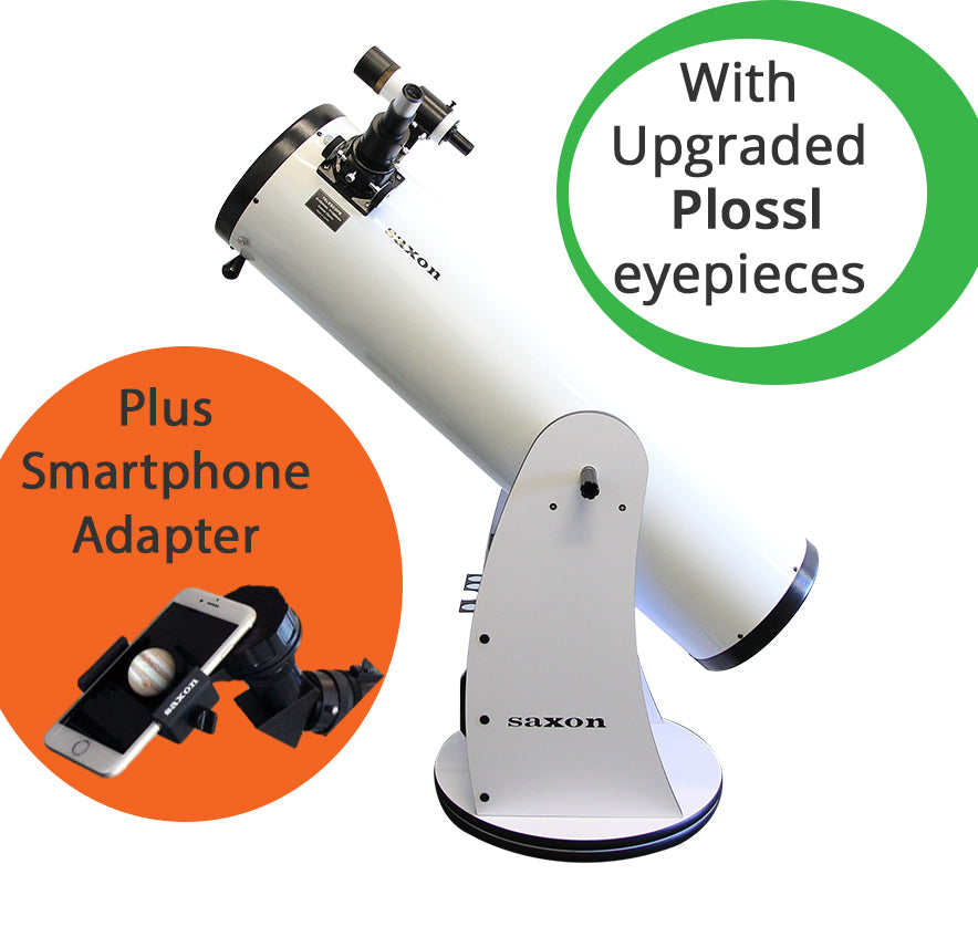 The Saxon " DeepSky Dobsonian Telescope is the perfect partner to begin your astronomy adventure with. This affordable telescope comes with a "paraboloidal" primary mirror to eliminate spherical aberration and a four-arm, secondary-mirror bracket with fine supports (0.5mm thick) to reduce diffraction spikes and light loss.