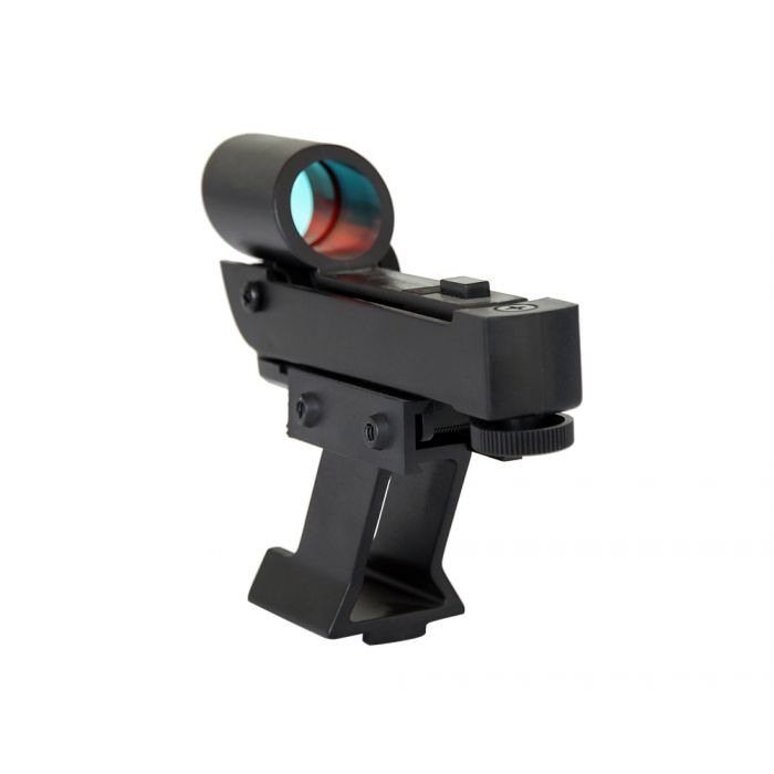 Its illuminated red dot is bright enough to use in daytime, giving great usability in light polluted areas, all while giving you a wide field of view and an upright, non-mirrored image of the sky.